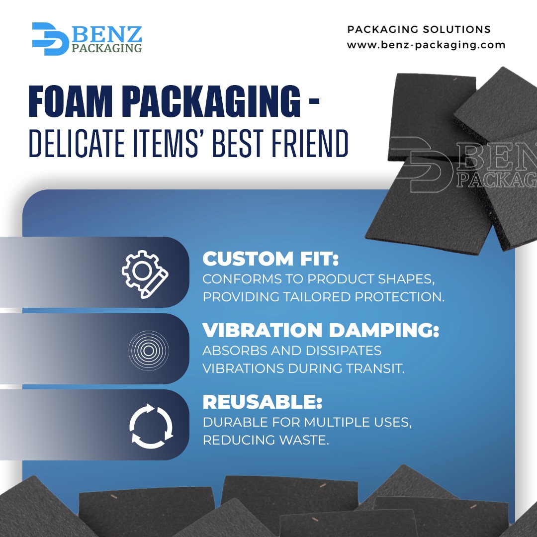 Step up your packaging game with BENZ Packaging’s Foam Packaging, the best friend your fragile items could ever have. Designed for the ultimate protection, our foam packaging offers a custom-fit solution that hugs your products securely, ensuring they reach their destination in impeccable condition.