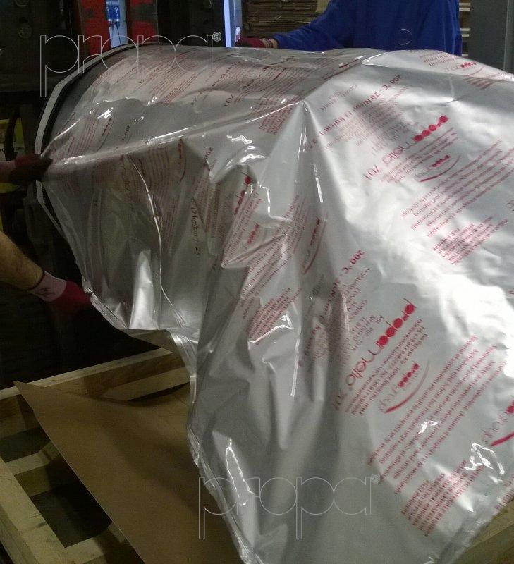 Aluminum Barrier Foil Packaging works on the principle of Climatic Packaging. The Barrier Foil acts as Barrier to the entry of Moisture inside the Packaging. It is sealed properly to ensure that outside Atmospheric moisture is not able to reach the metallic surface in the Packaging. Moreover, the Climate inside the Packaging is Vaccumized to reduce the quantum of Moisture and the Air. Additional Moisture Absorbers and VCI materials are added to attain relative humidity less than 40% and Corrosion Protection respectively.