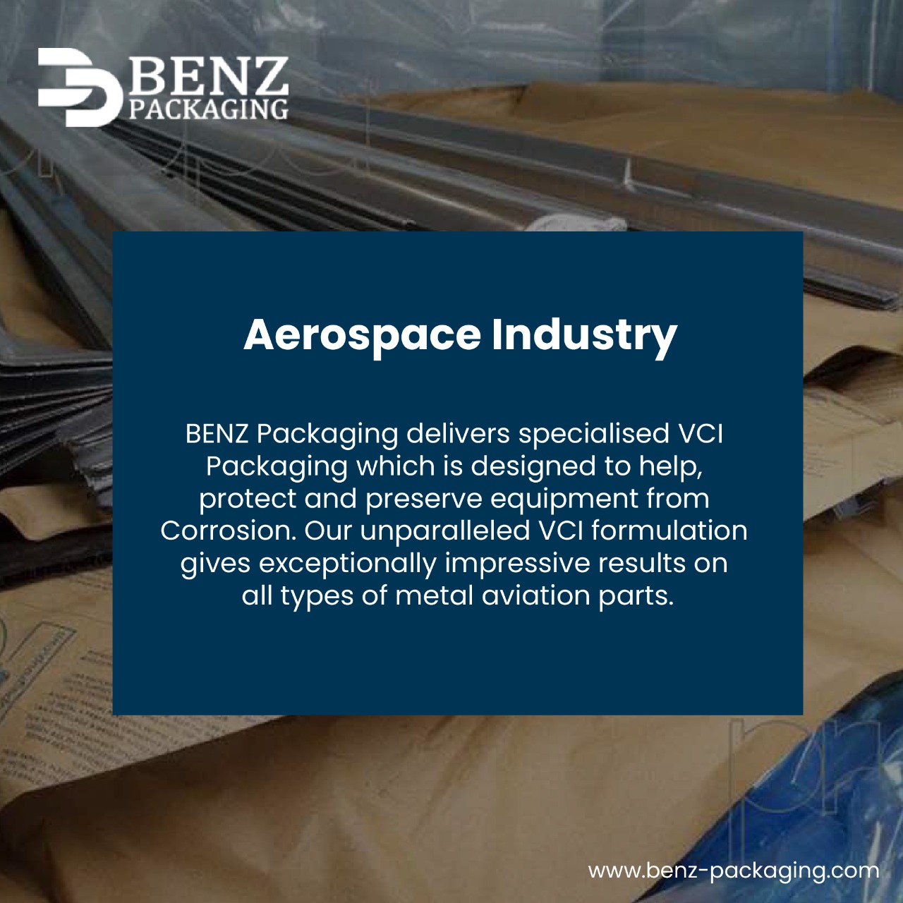 The Indian Aerospace and Defence industry is one of the highest technology industries witnessing unprecedented growth. And it roughly generates $500 billion-plus revenue every year. However, aerospace and the defense industries are troubled by corrosion. Components and parts are generally of high value and are stored for a period up to 15 years. BENZ Packaging delivers specialized VCI Packaging which is designed to help, protect and preserve equipment from Corrosion. Our unparalleled VCI formulation gives exceptionally impressive results on all types of metal aviation parts.