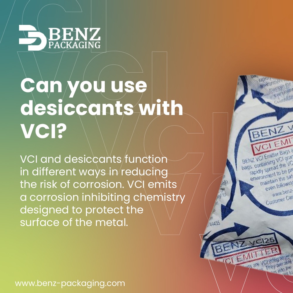 Yes, desiccants can be used with VCI packaging. However, they both work in different ways still when used together while packaging, the chances of moisture corrosion are nil.